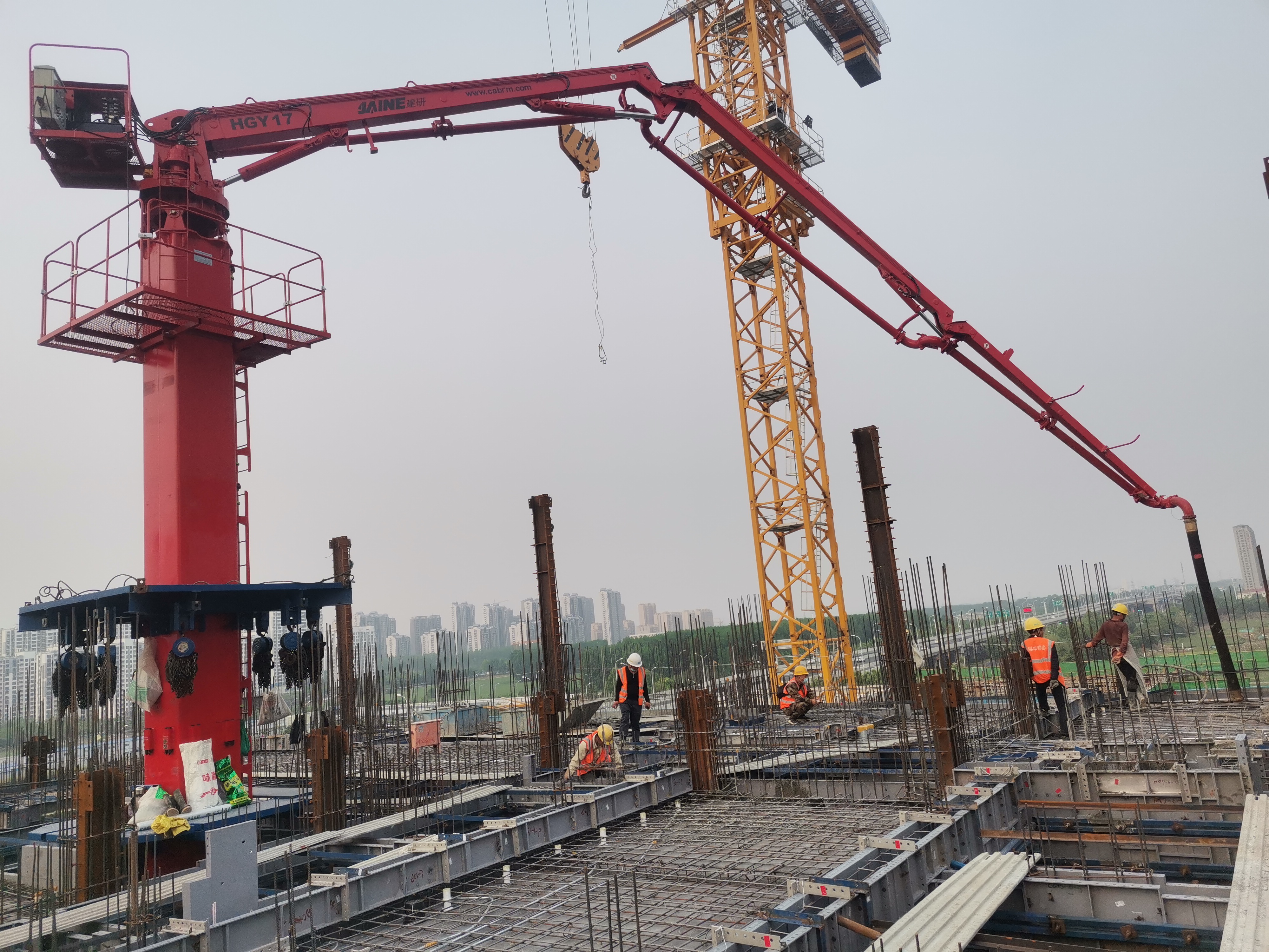 廊坊凱博建設機械科技有限公司生產的?JAINE建研?內爬式布料機(HGY17)經過用戶多方面的綜合比較和激烈競爭后,成功進駐濟寧京杭大數據產業園基礎設施項目。